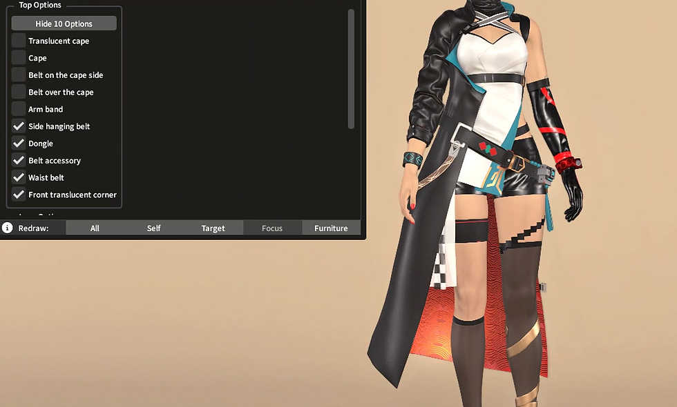 Outfit has toggles to hide various parts on it, that are shown in a video